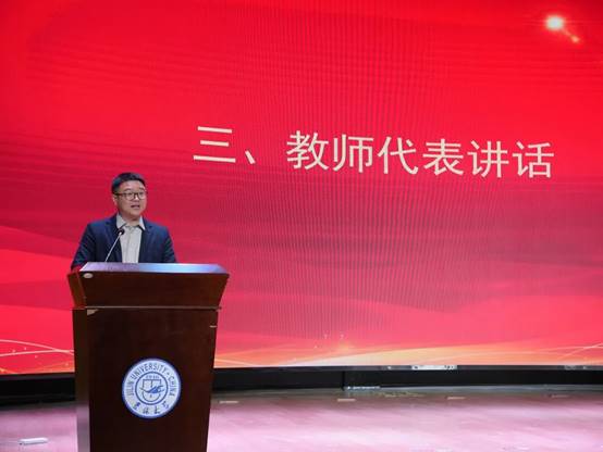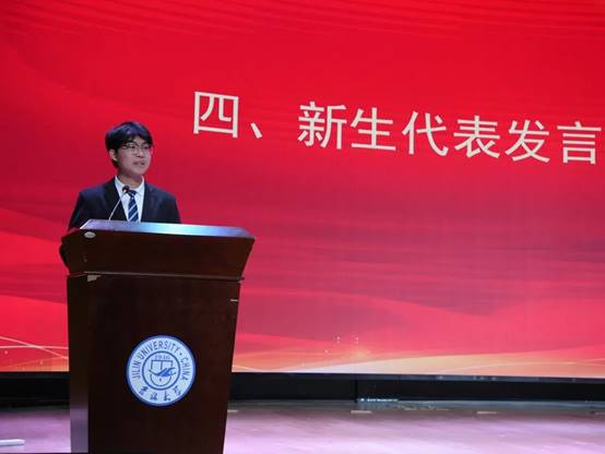 新生代表邢思源代表全体新生发言,他用自己与地质的故事表达了对地学的热爱与向往,向学院的暖心关怀、班主任的默默付出致以最崇高的敬意。他号召全体同学珍惜求学时光,扎实锤炼专业本领、厚植家国情怀,携手笃行成长,不负师长期许与青春韶华。