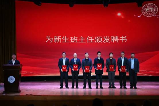 在中心校区敬信楼报告厅举行2025级新生班主任聘任仪式。学院党委书记衣长涛、党委副书记兼纪委书记吴新明、副院长苗广文、受聘本科生班主任的专业教师、全体辅导员以及2025级全体本科生参加仪式。学院党委副书记兼副院长司镇通主持聘任仪式。