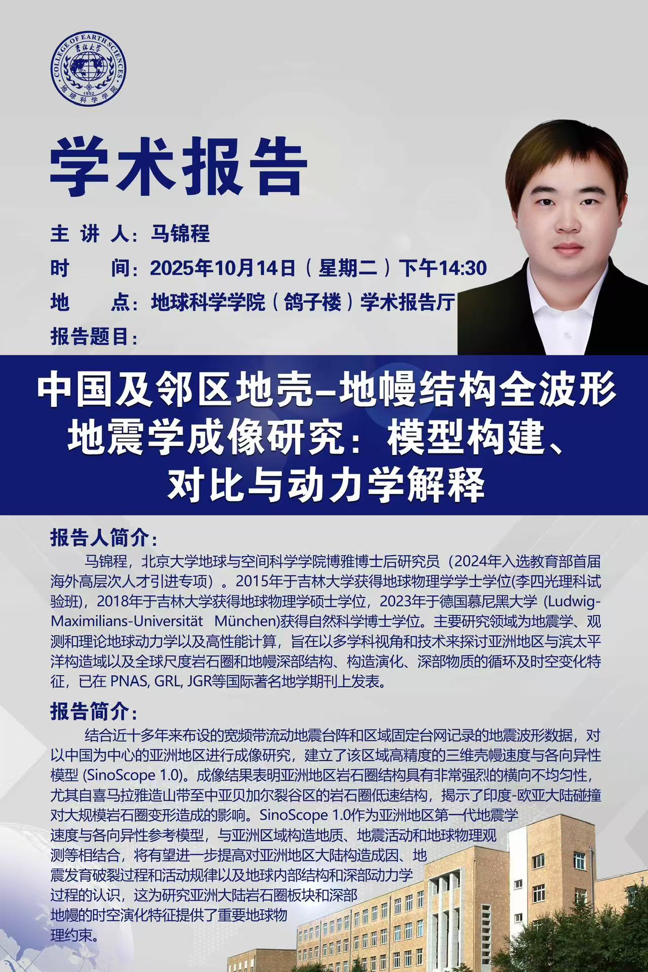北京大学地球与空间科学学院博雅博士后研究员马锦城学术报告
