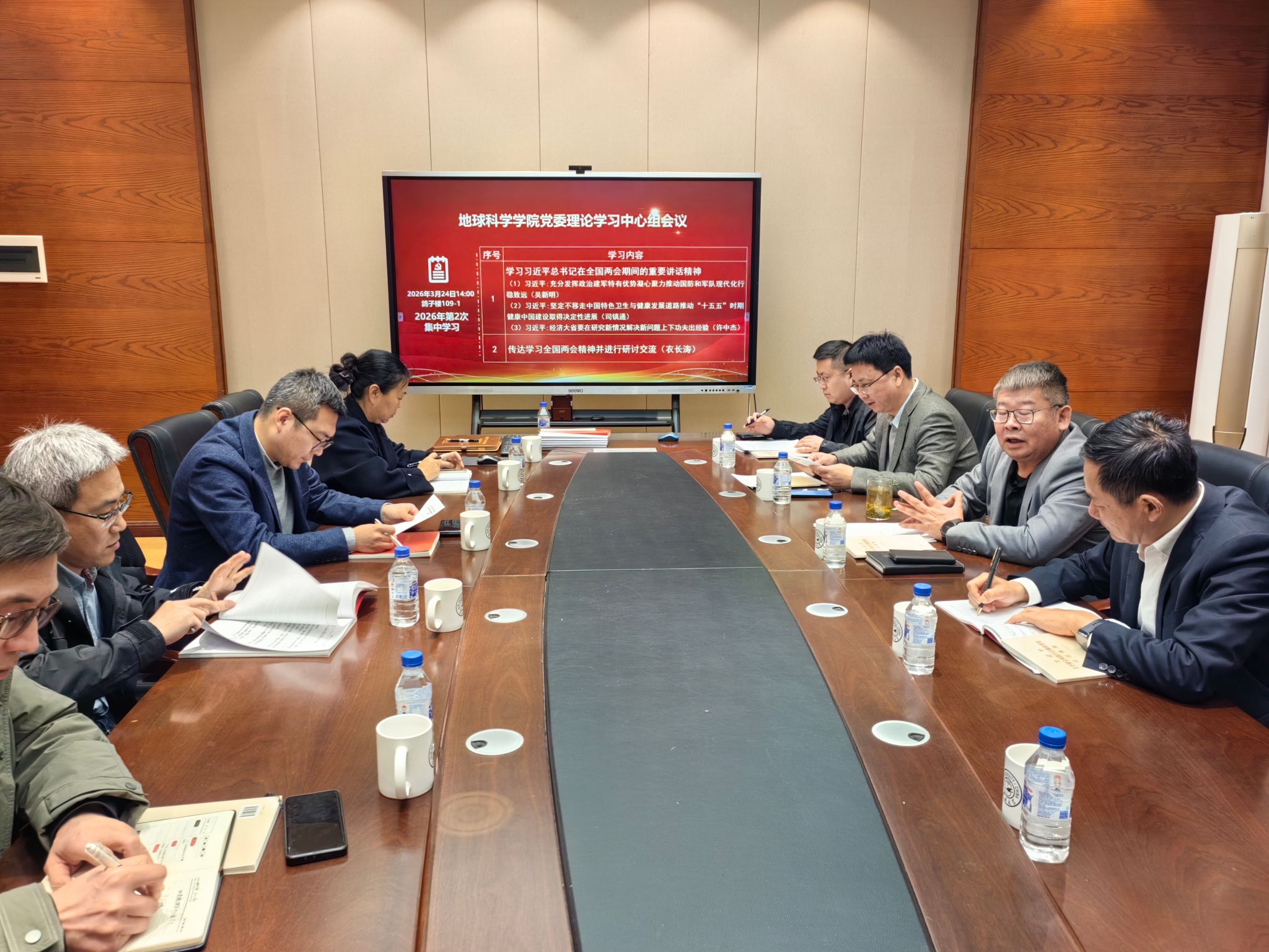 3月24日,地球科学学院在鸽子楼109-1会议室召开党委理论学习中心组(扩大)会议,学院理论学习中心组成员班子成员参加会议会议由党委书记衣长涛主持。